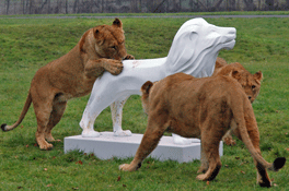 Two the magnificent 6ft lion sculptures are still available for sale; the footballers' choice "Wayne Roar-ney" and the sleek conservation lion "Big Game?"